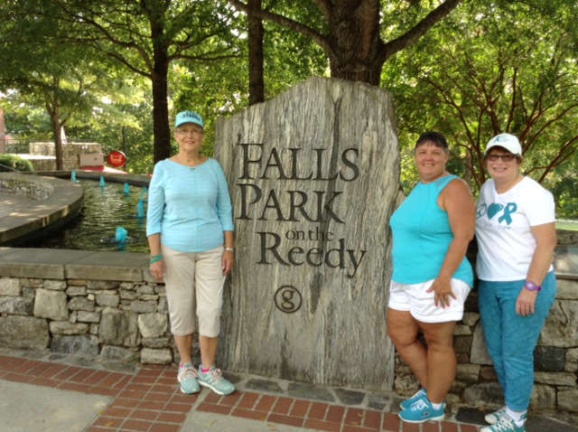 Falls Park South Carolina Women With Sign